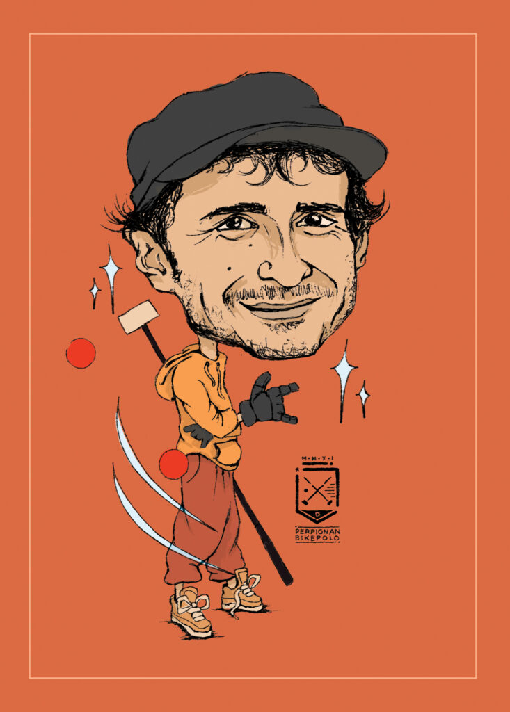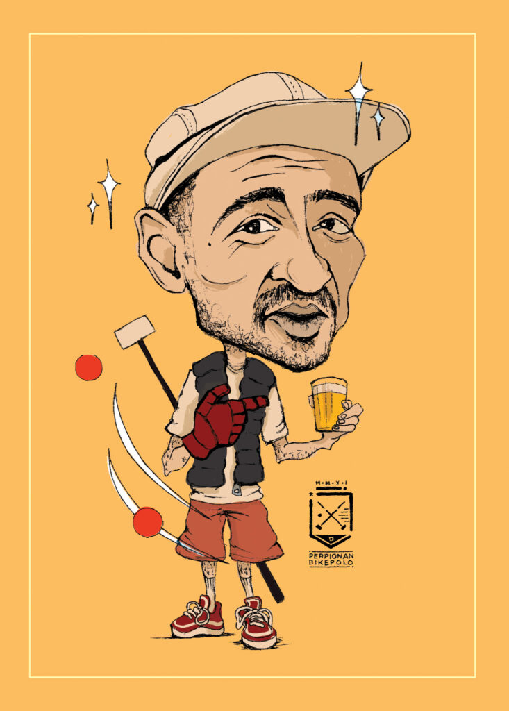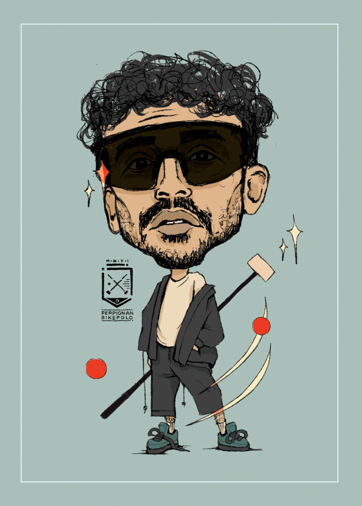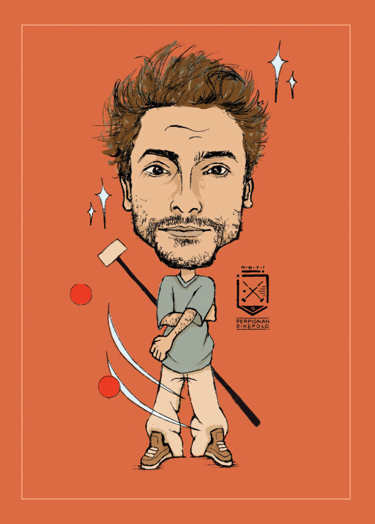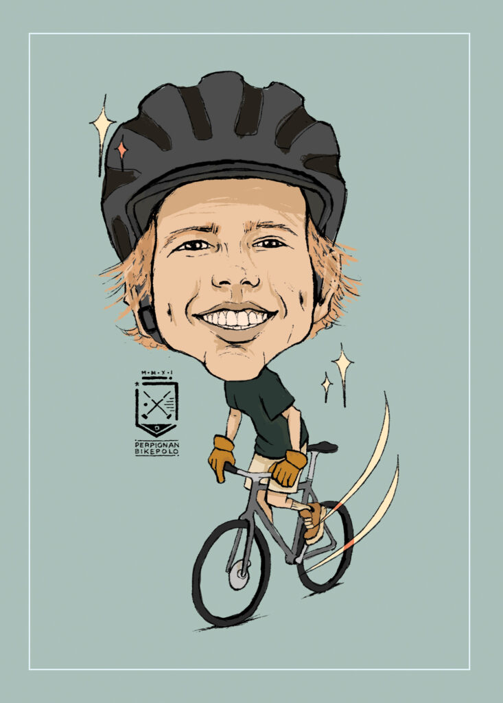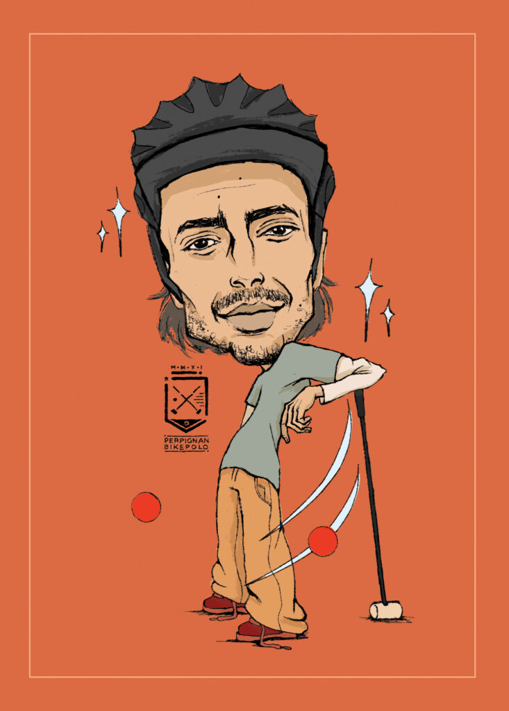 caricatures of bike polo players from perpignan bike polo