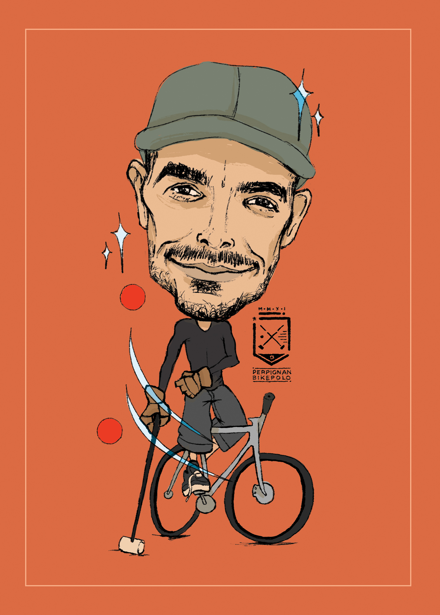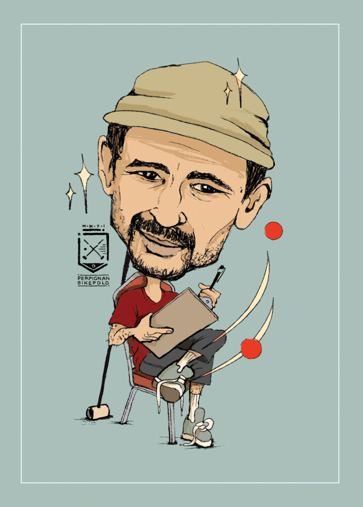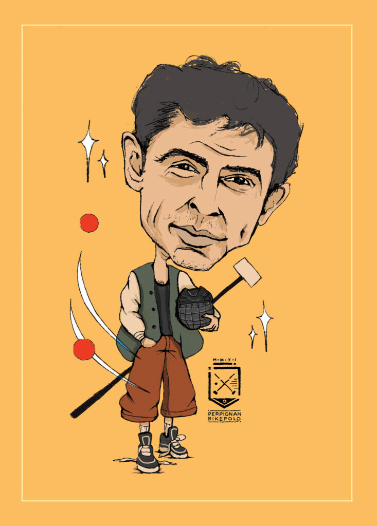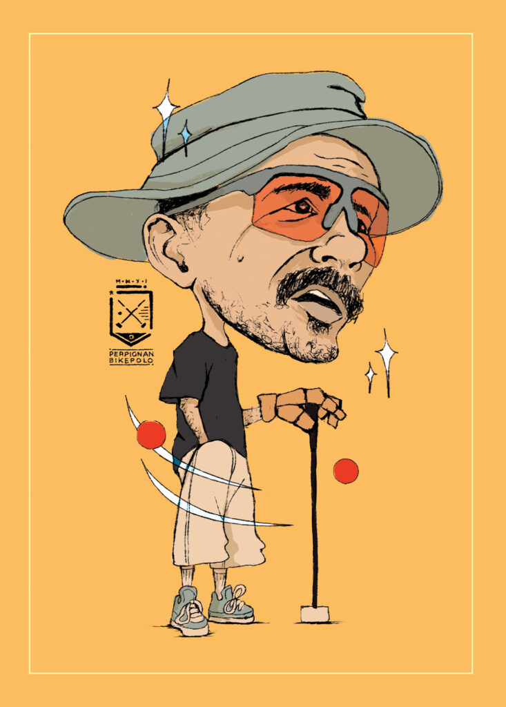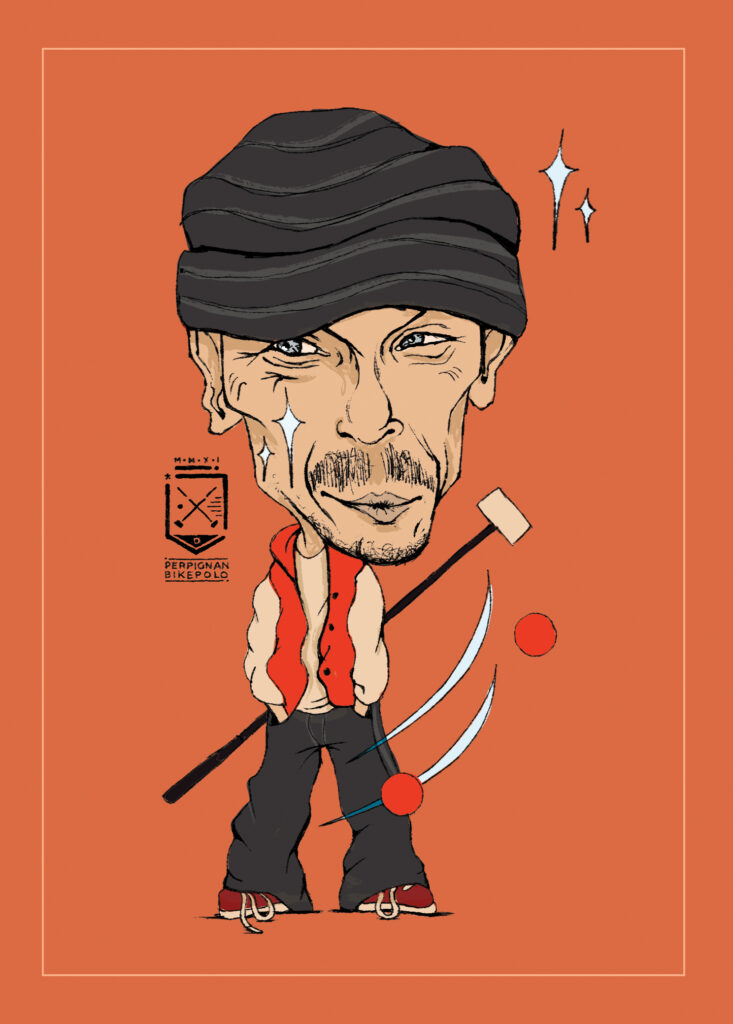 caricatures of bike polo players from perpignan bike polo