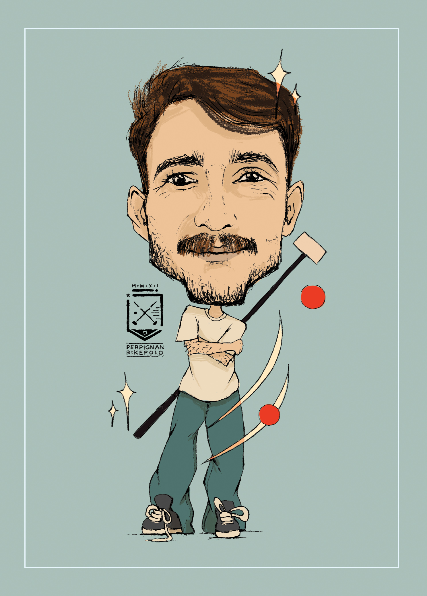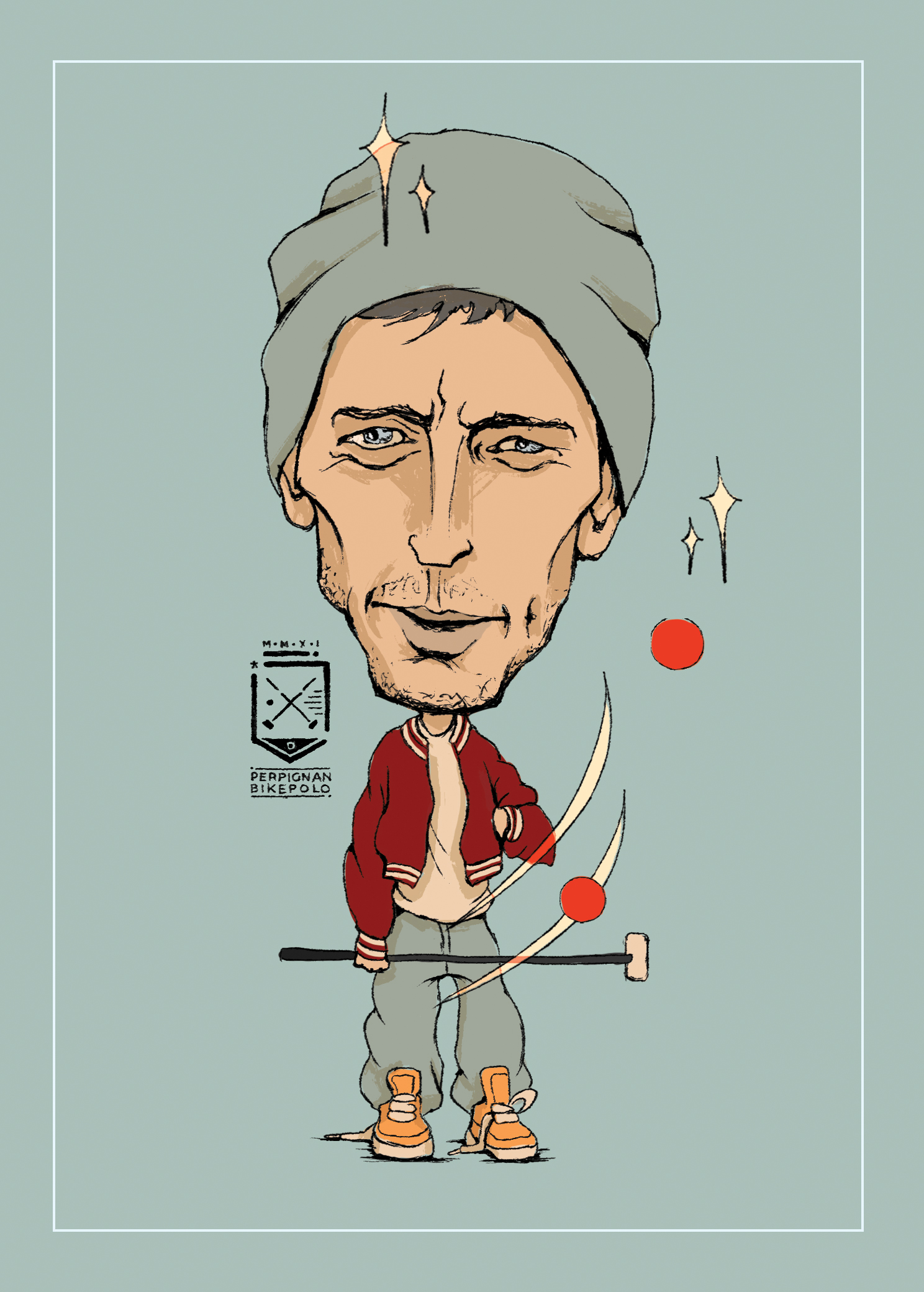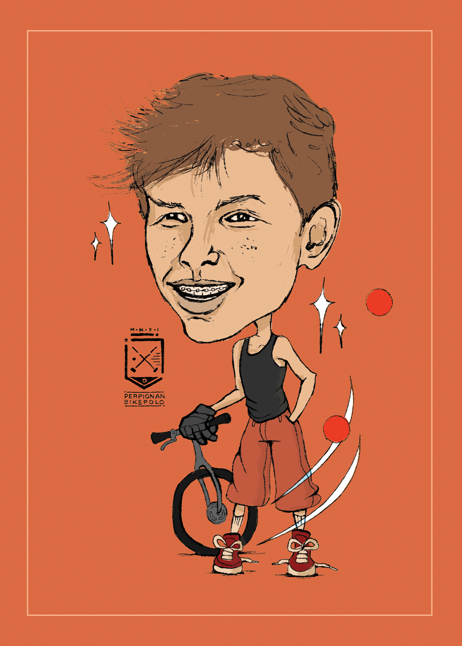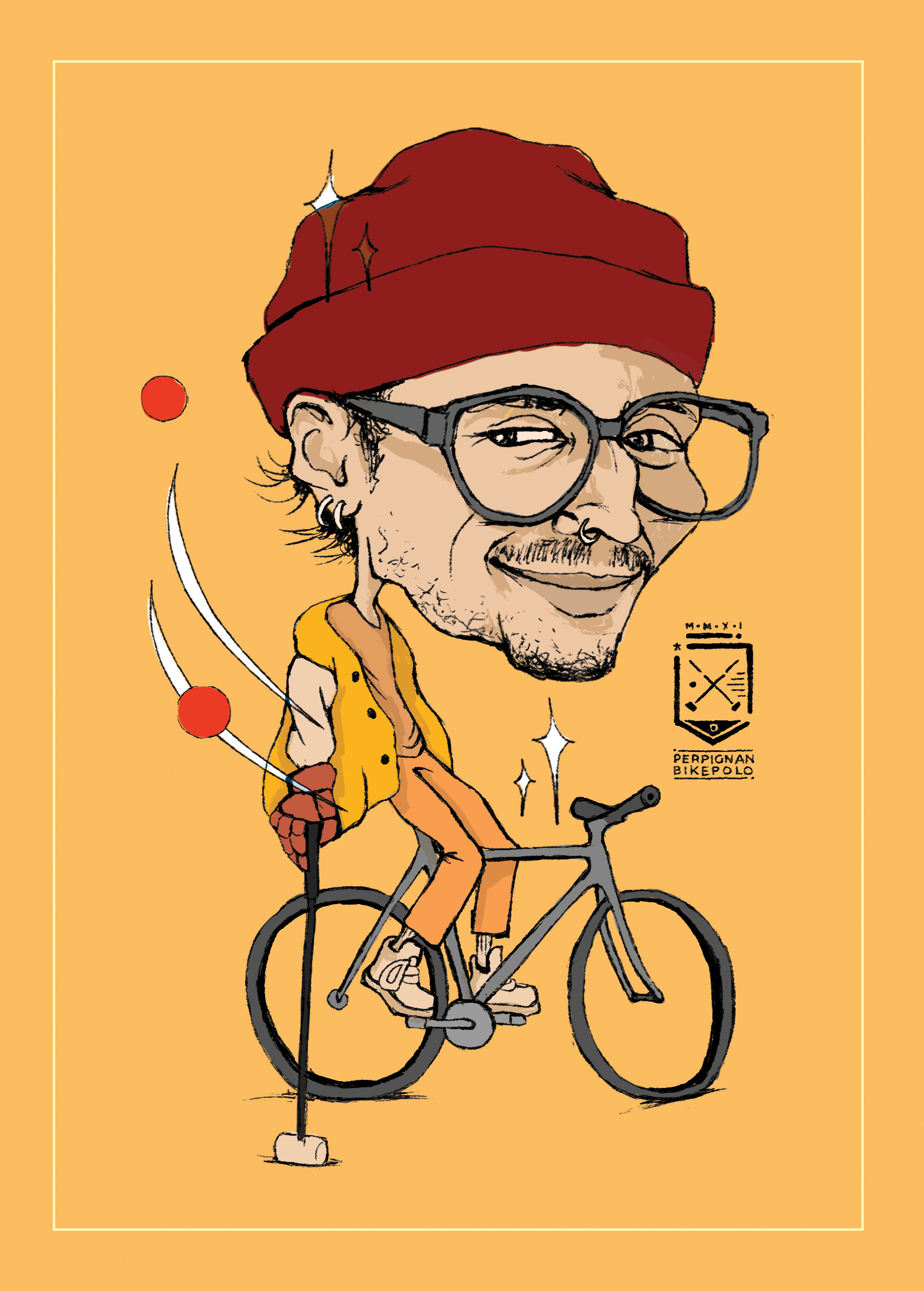 caricatures of bike polo players from perpignan bike polo